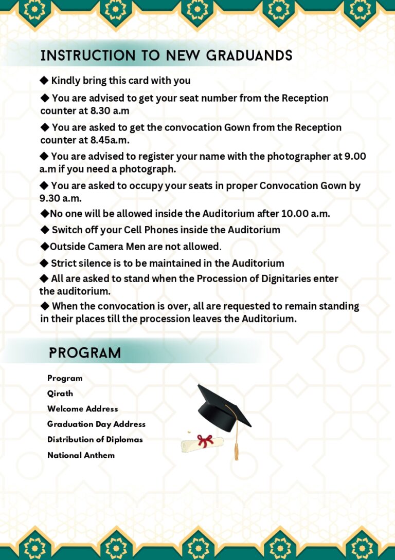 We are delighted to invite all eligible graduates to the 16th Graduation Day Ceremony of M. M. E. S. WOMEN’S ARTS AND SCIENCE COLLEGE, Melvisharam.